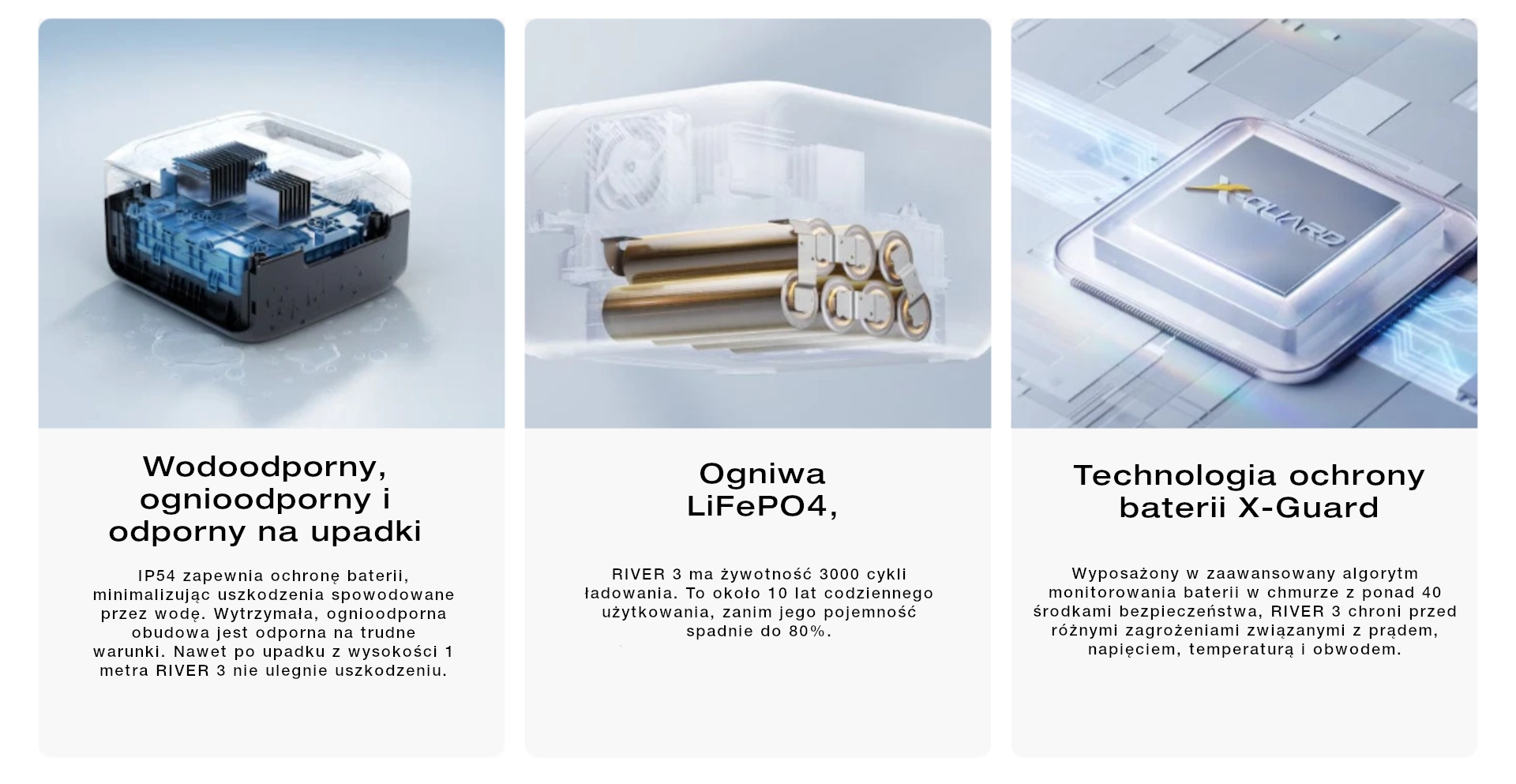 Dzięki przełomowej technologii X-GaNPower, RIVER 3 wykorzystuje doskonałą wydajność energetyczną, aby wydłużyć czas pracy urządzeń o niskim poborze mocy dzięki kompaktowej konstrukcji i cichszej pracy.