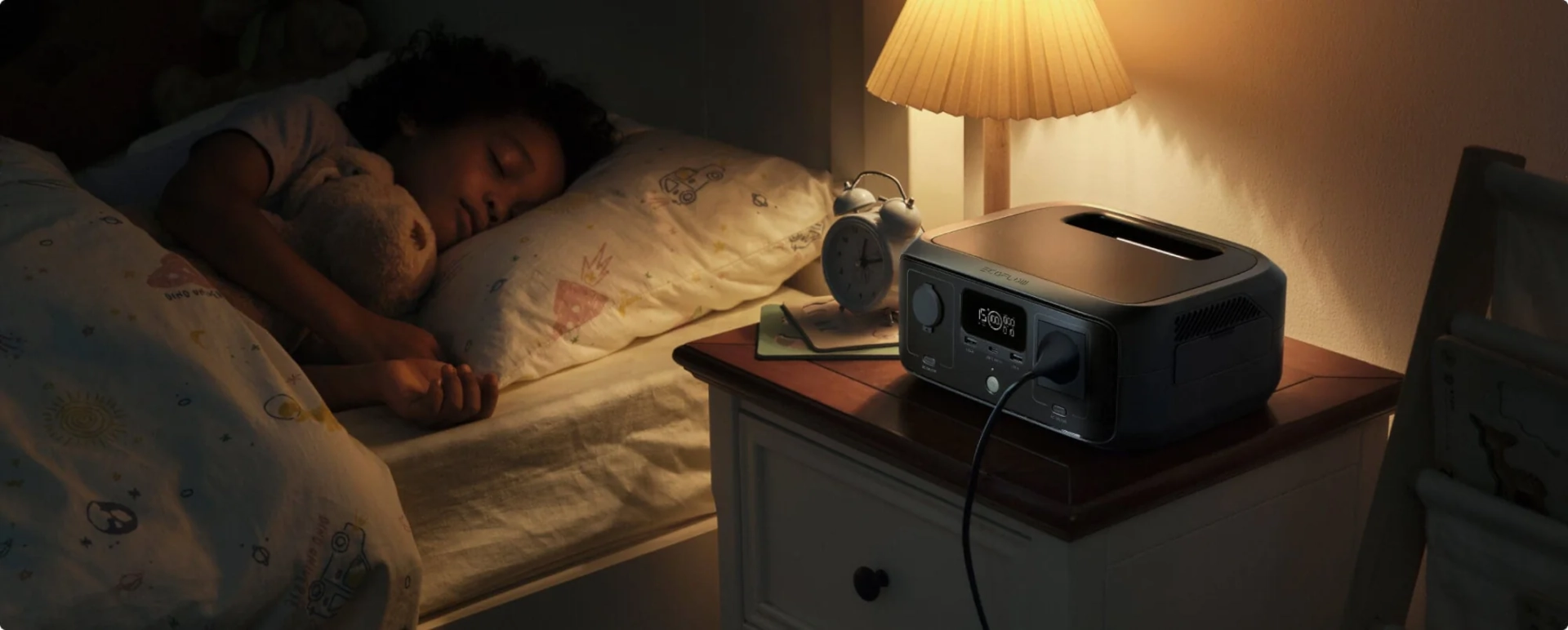 Gdy nastąpi przerwa w zasilaniu, gniazdo AC przełączy się na zasilanie RIVER 3 w ledwie zauważalnym czasie 20 ms. Zapewnia to działanie najważniejszych urządzeń domowych, przechowywanie żywności, bezpieczeństwo i komunikację. Płynne, automatyczne przełączanie zapewnia nieprzerwany spokój ducha.