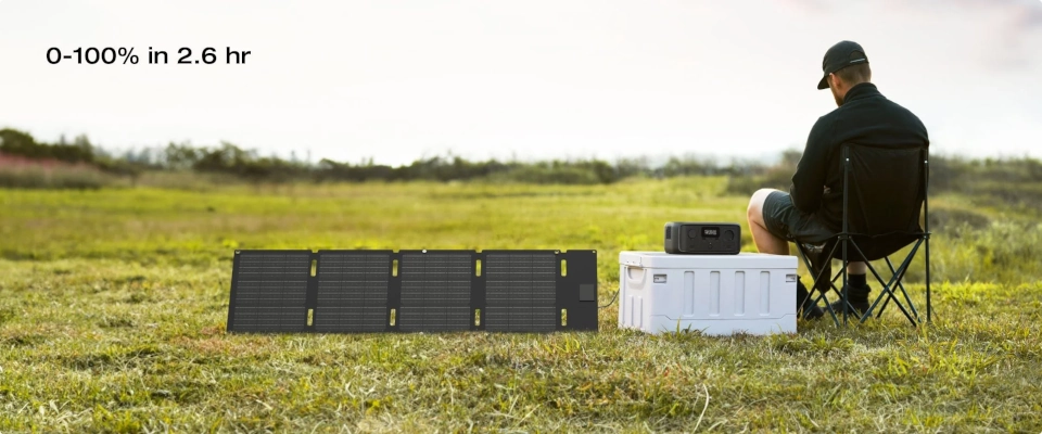 Zasilanie RIVER 3 w zaledwie 2,6 godziny dzięki panelowi słonecznemu o mocy 110 W. Jeszcze bardziej przenośny jest nasz przenośny panel słoneczny 45 W (Typ-C), który składa się do rozmiaru laptopa i bezpośrednio ładuje elektronikę.
